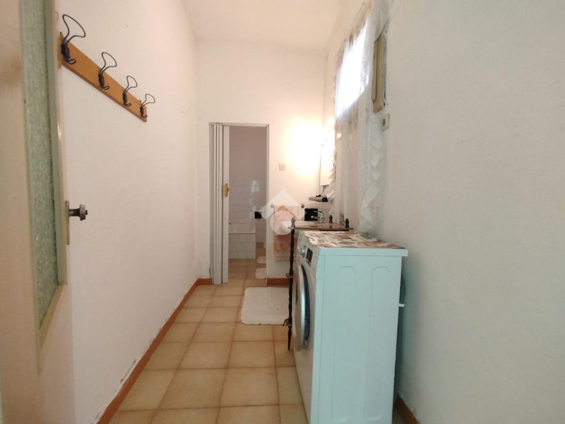 L'interno, che offre ambienti spaziosi, è composto da loggiato, soggiorno ampio, angolo cottura separato, sala da pranzo, camera da letto matrimoniale, camera singola, anti-bagno e bagno con vasca.