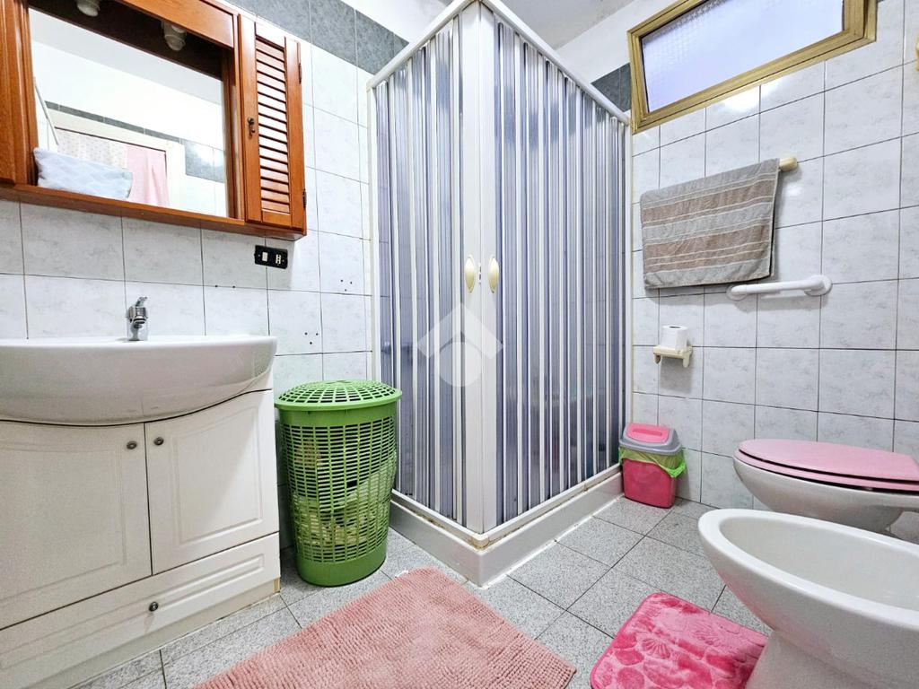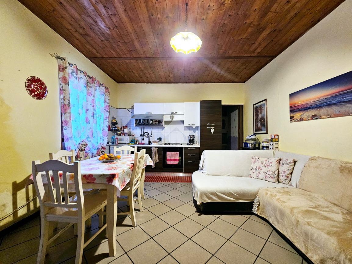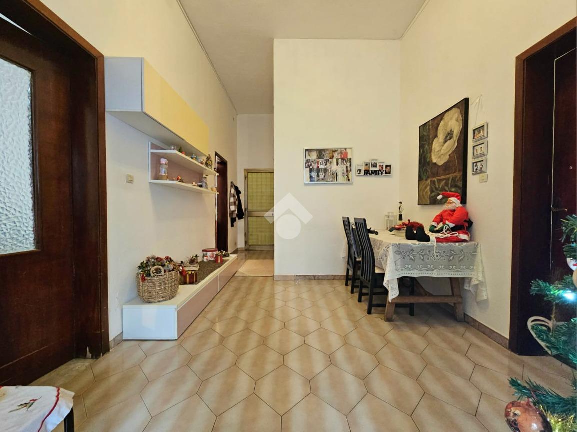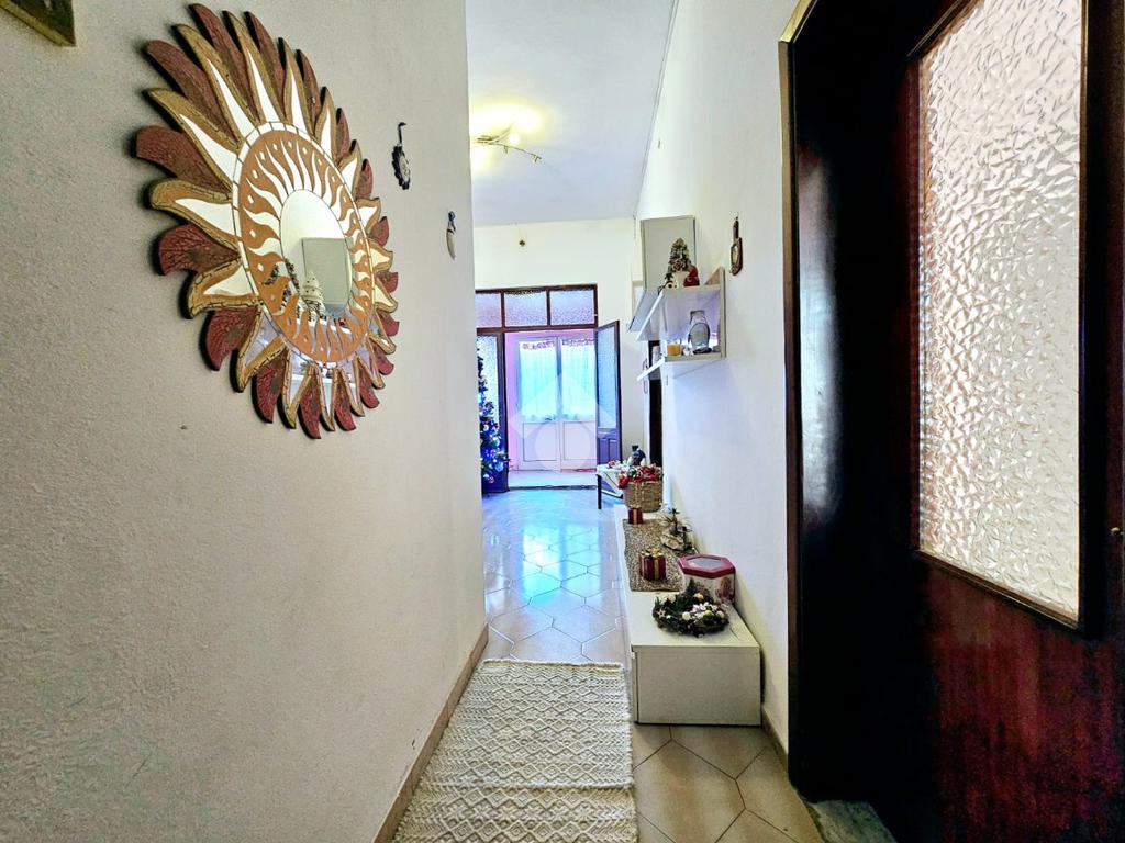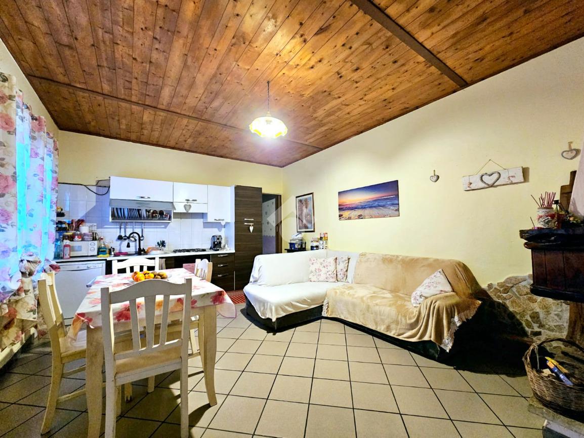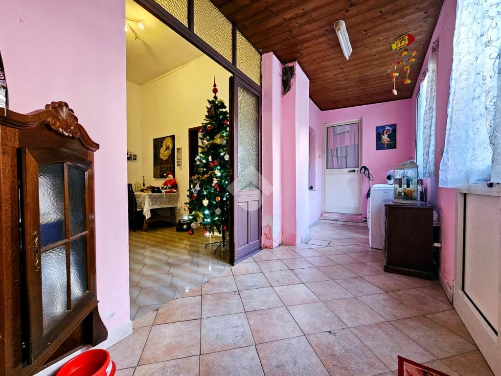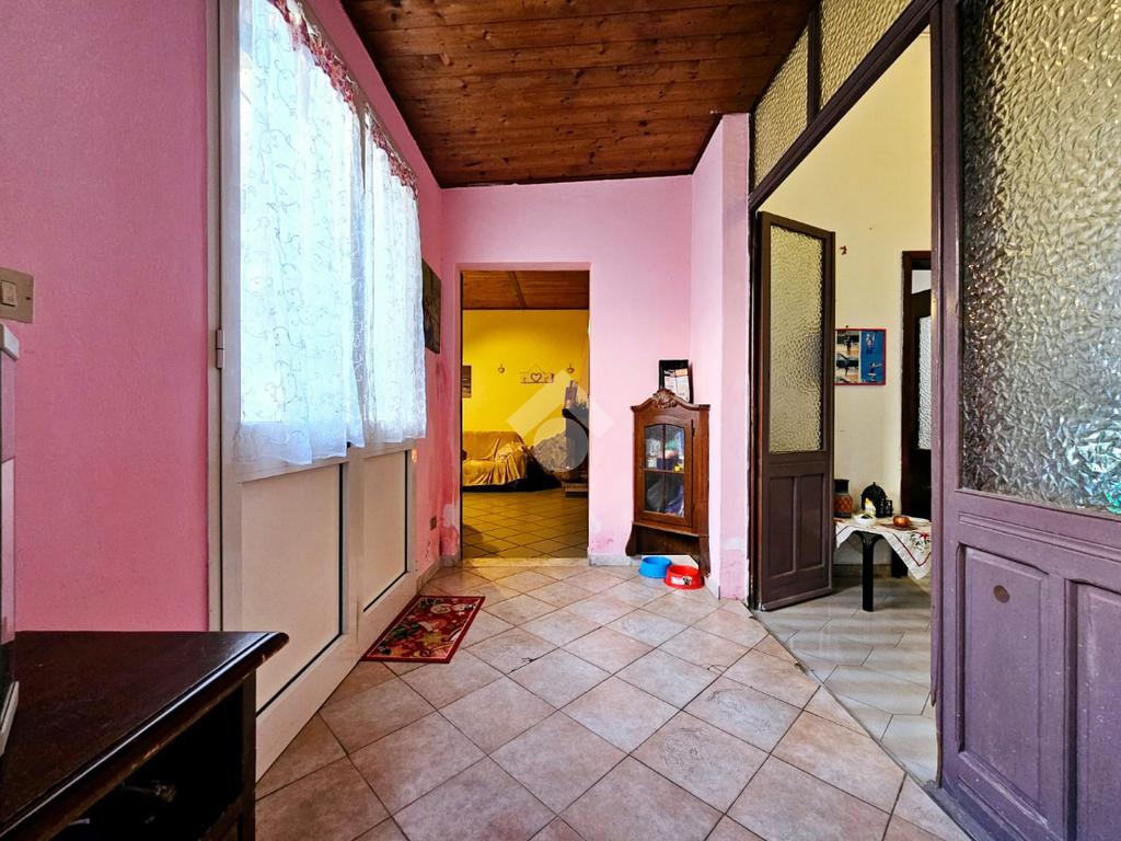 L'ampio ingresso permette di raggiungere i vari ambienti della casa. Dal loggiato si accede alla cucina abitabile con caminetto e dispensa ed al bagno finestrato con box doccia.