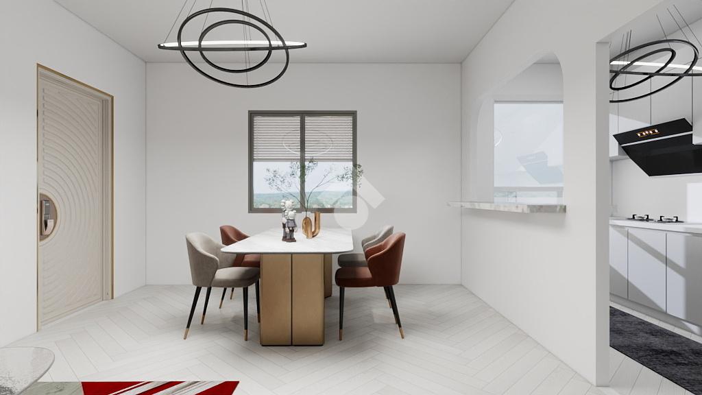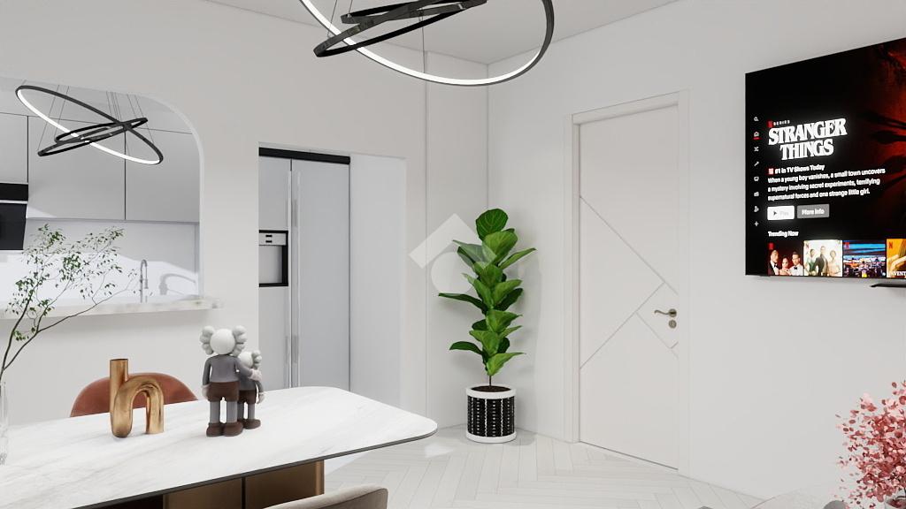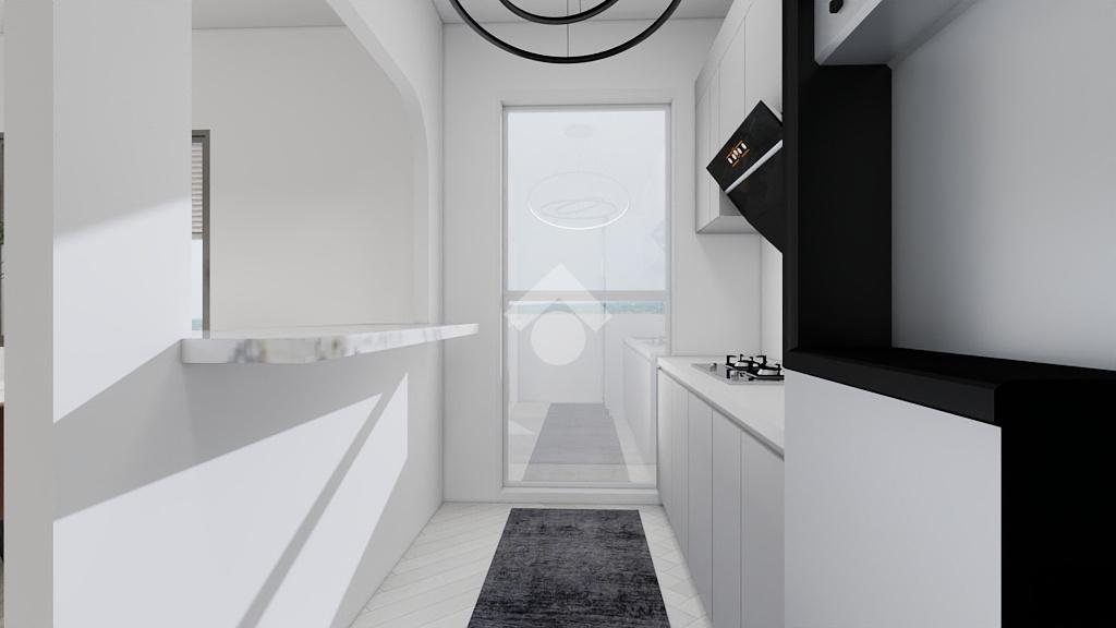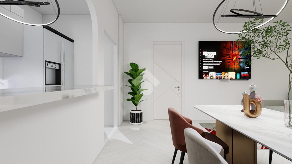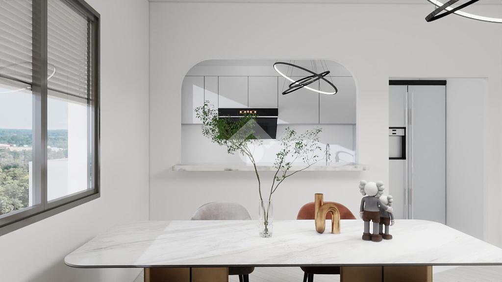 La zona giorno consiste in soggiorno spazioso con una elegante zona cottura, dotata di un pratico bancone, da cui si accede ad un balcone che abbraccia tre lati dell'appartamento. Un disimpegno guida verso la zona notte, caratterizzata da una camera matrimoniale ampia e luminosa, una camera singola versatile e un bagno finestrato dotato di doccia, pensato per il massimo comfort.